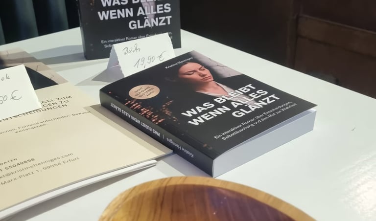Am 9. November wurde der Kastanienhof in Erfurt zu einem sehr besonderen Ort. Zur Premiere meines interaktiven Romans „Was bleibt, wenn alles glänzt?“ versammelten sich rund zwei Dutzend Gäste, die nicht nur zuhören, sondern Teil der Geschichte werden wollten.