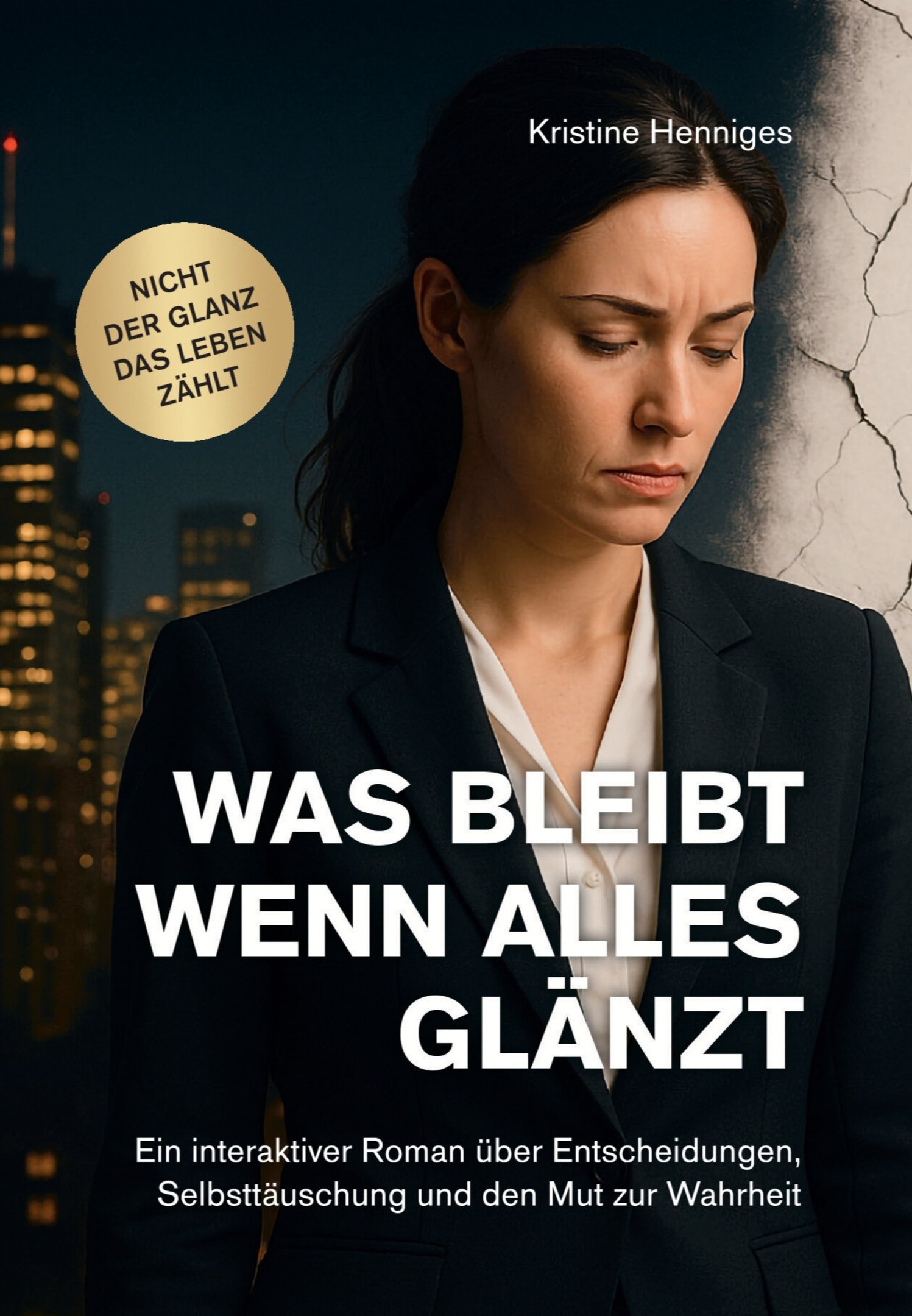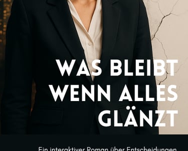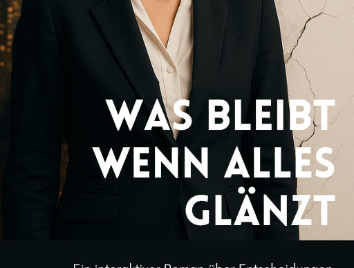 Pressemitteilung, Leseprobe, Cover & Autorenfoto zum interaktiven Roman „Was bleibt, wenn alles glänzt?“